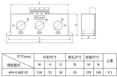 | Z-3×Φ20 | 5-100/5A | 1.5VA | Φ20 | |